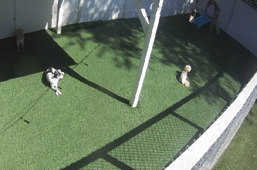 Your dog can run and play all day, make doggie friends, and enjoy his/her time away all in a supervised environment. Our extra-large daycare yard offers all the space your dog needs as well as toys, balls and, of course, water.